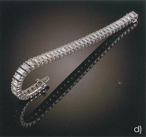 estimated at US$70,000-90,000 and will be offered alongside at 10.13cts stone. also a brilliant cut, estimate: US$40,000-60,000, and a 5.68 ct F colour, VVS2 clarity rectangular diamond, estamated at US$90,000-120,000. Also among the diamonds is a fine diamond line bracelet set with rectangular stones with an estimate of US$50,000-60,000. |