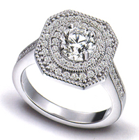Entry Platinum Engagement Ring (semi-mounts under US$2,500 retail); Uneek Fine Jewelry Collections: Platinum engagement ring featuring a diamond halo and shank (.21 ct. tw);