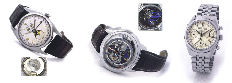 Left to right : F.P. Journe, Centigraph Sport, Ergonomic Chronograph, first wristwatch entirely made from aluminum, No.1 manufactured in May 2011, sold for US$465,170 at Hong Kong