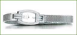 2 Tiffany&Co,: Tonneau CASE: in platinum, tonneau shape, set with diamonds (1.92 carats). DIAL: white, baton hands and two Arabic numerals at 6 and 12 o'clock. MOVEMENT: electronic quartz. FUNCTIONS: hours and minutes. |